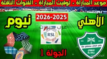 موعد مباراة الأهلي ونيوم في الجولة الأولى من دوري روشن السعودي والقنوات الناقلة التي لا تفوتها