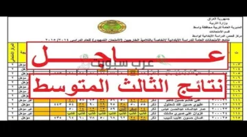 شوف نتائج الثالث متوسط 2025 بالدور الثاني بالعراق وحمّلها PDF برقمك