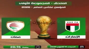 uae vs oman.. موعد مباراة الإمارات ضد عمان في تصفيات كأس العالم 2026 والتشكيل المتوقع والقنوات الناقلة